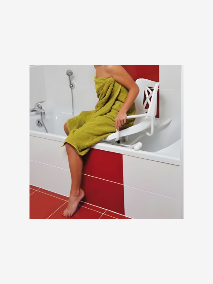 Il vous permet de vous asseoir en dehors de votre baignoire et de pivoter doucement à 90° pour y entrer. Il suffit de soulever le levier latéral pour le faire pivoter. Vous pouvez alors prendre votre douche en toute sécurité et confortablement installé.