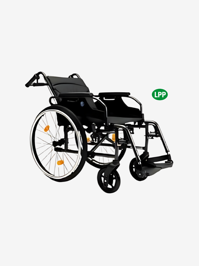 Le D200 30° est un fauteuil roulant léger en aluminium avec dossier inclinable à 30° et rabattable sur l’avant.