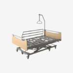 Lit médicalisé à hauteur variable électrique : descend très bas jusqu’à 26 cm du sol pour prévenir des risques de chute du patient. Relève-buste électrique à translation pour éviter le glissement du patient vers le pied du lit et prévenir des escarres ; relève-jambes électrique.